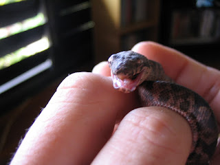 Helen hand feeds RiffRaff, a young male Pacific Boa.
